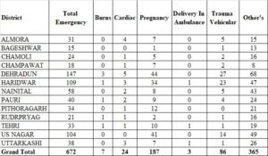 जनपदवार प्राप्त आपातकालीन सेवाओ की आकड़े निम्नवत है